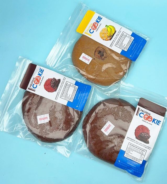 Galleta de proteína a base de avena, claras de huevo, proteina isolatada, panela y stevia, sabor vainilla