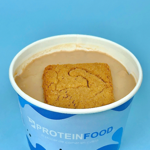Nuestra versión de cuchareable de alfajor con manjar de olla proteico endulzado con eritritol.