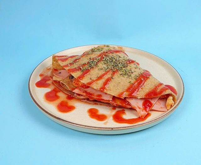 Deliciosa tortilla multigrano, rellena con queso fresco light, salsa pomarola, cebolla blanca, champiñones y jamón de pavo.
